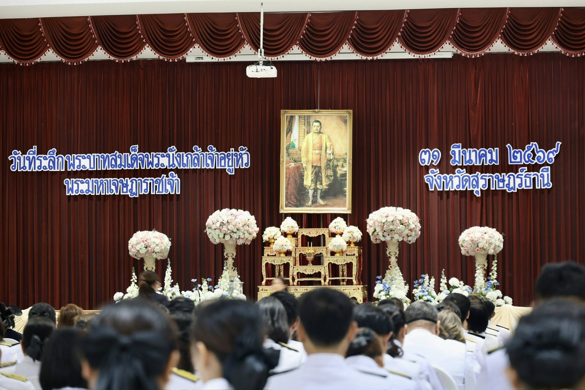 วันอังคาร ที่ 31 มีนาคม 2569 เวลา 08.00 น.โดย นายปรีชา วิเศษสิทธิ์ ผู้อำนวยการแขวงทางหลวงสุราษฎร์ธานีที่ 1 มอบหมายให้ นายมณฑล ภัทราเวทวิวัฒน์ นักจัดการงานทั่วไปปฏิบัติการ ร่วมประกอบพิธีวางพุ่มดอกไม้ถวายราชสักการะหน้าพระบรมสาทิสลักษณ์ เพื่อแสดงความกตัญญูกตเวทีและน้อมรำลึกในพระมหากรุณาธิคุณของพระมหากษัตริย์รัชกาลที่ 3 แห่งพระบรมราชจักรีวงศ์ ที่ทรงมีต่อปวงชนชาวไทย โดยมี นายจุมพฎ วรรณฉัตรสิริ ผู้ว่าราชการจังหวัดสุราษฎร์ธานี เป็นประธาน ณ อาคารศูนย์กลางการประชุมสัมมนาภาคใต้ตอนบน ศาลากลางจังหวัดสุราษฎร์ธานี